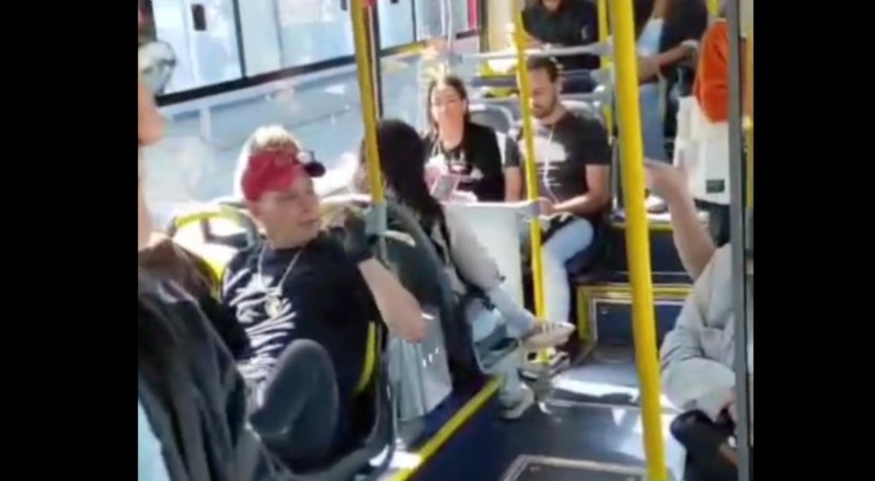 O comportamento agressivo foi imediatamente confrontado por uma passageira, que se revoltou e defendeu as mulheres.