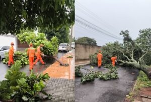 Chuva com vendaval derruba árvores, parte da rede elétrica e interdita trechos de ruas em Foz do Iguaçu 16/03/2026